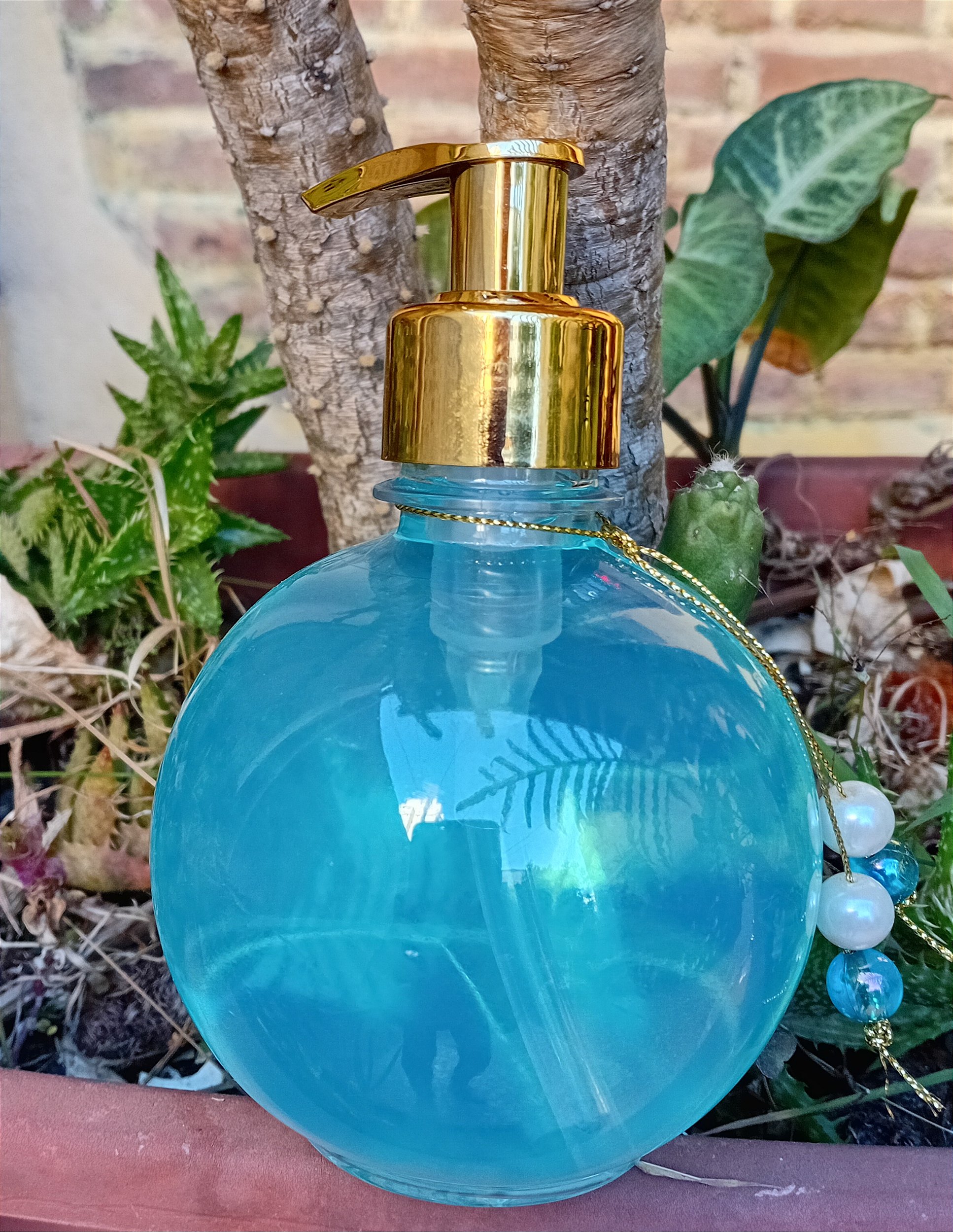 Sabonete Luquido atoma Cheiro da Amazônia. 350ml. Versão luxo. Com válvula dourada e enfeite em miçangas.