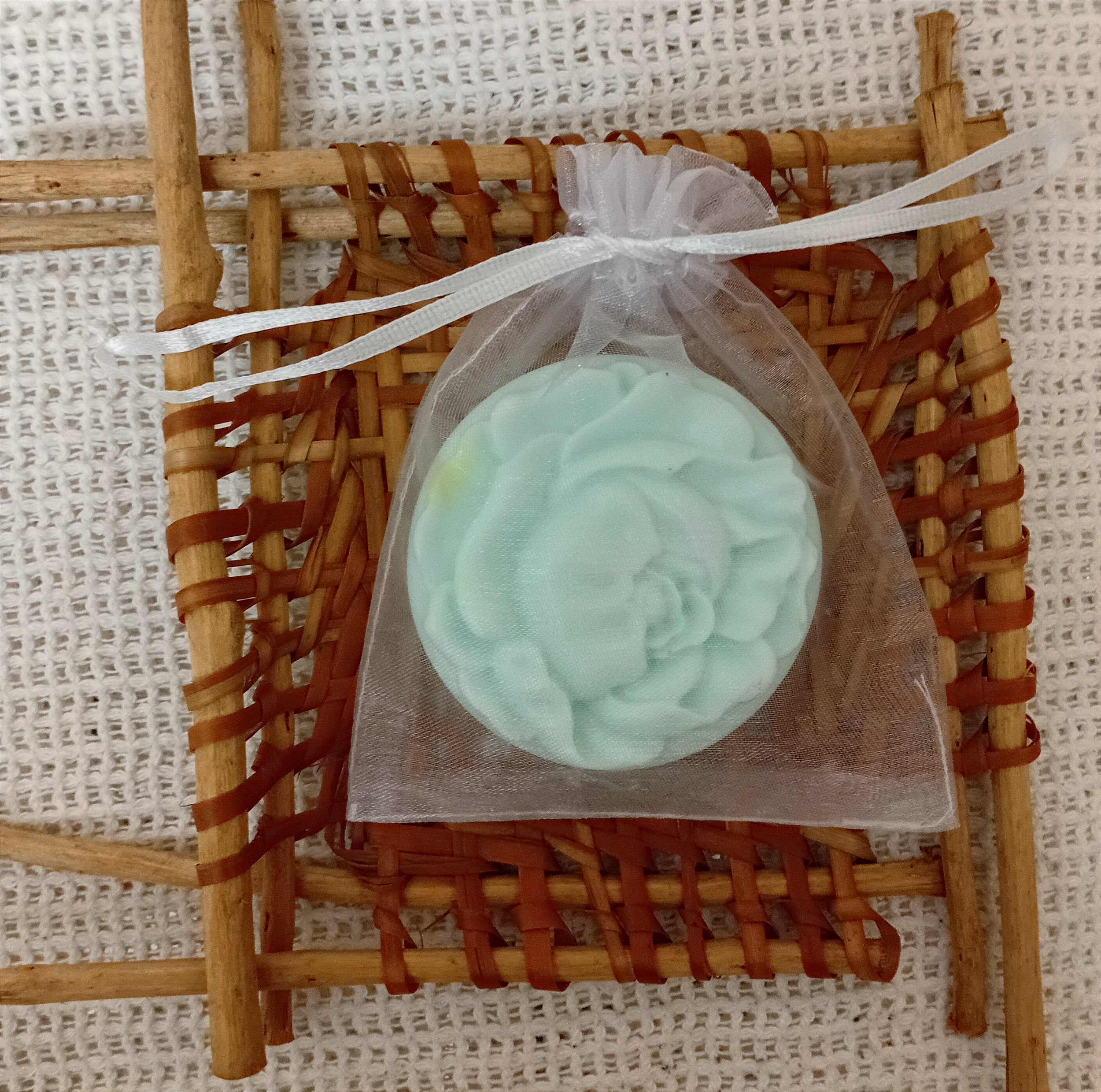 DESCRIÇÃO:Delicado e muito cheiroso. Sabonete redondo peso 65g. Utilizado também como aromatizante. Vem em saquinho de organza com fitilho para pendurar.