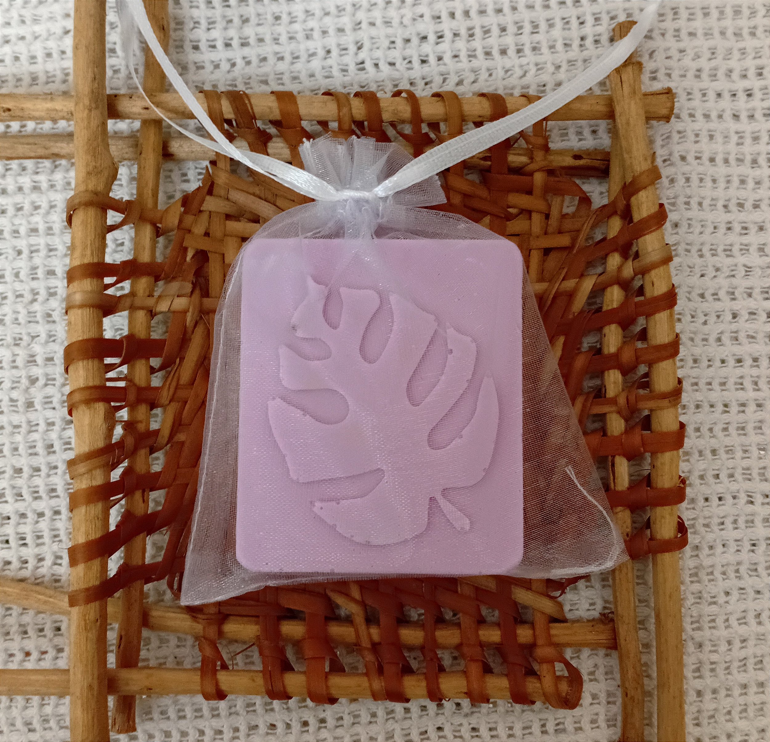 DESCRIÇÃO:Delicado e muito cheiroso. Sabonete retangular peso 90g. Utilizado também como aromatizante. Vem em saquinho de organza com fitilho para pendurar.